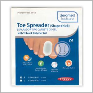 Разделитель пальцев — корригирующее вкладное приспособление. Разделяет 1-й и 2-й пальцы стоп, удерживает их в правильном положении, уменьшает давление между пальцами, исправляет установку первого пальца при Hallux valgus . Пригоден для пациентов после операций, защищает от подкосов при вальгусе. Снижает болевые ощущения и дискомфорт при молоткообразных пальцах. Изготовлен из мягкого, эластичного увлажняющего геля.