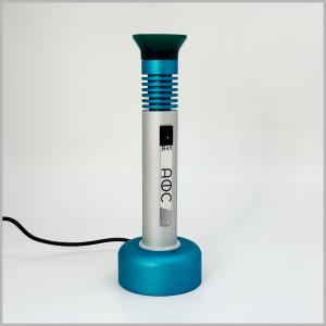 - Полностью заряженный аппарат закрепить в штативе и установить его таким образом, чтобы насадка в виде пластикового наконечника касалась кожного покрова дистальной фаланги пальца.