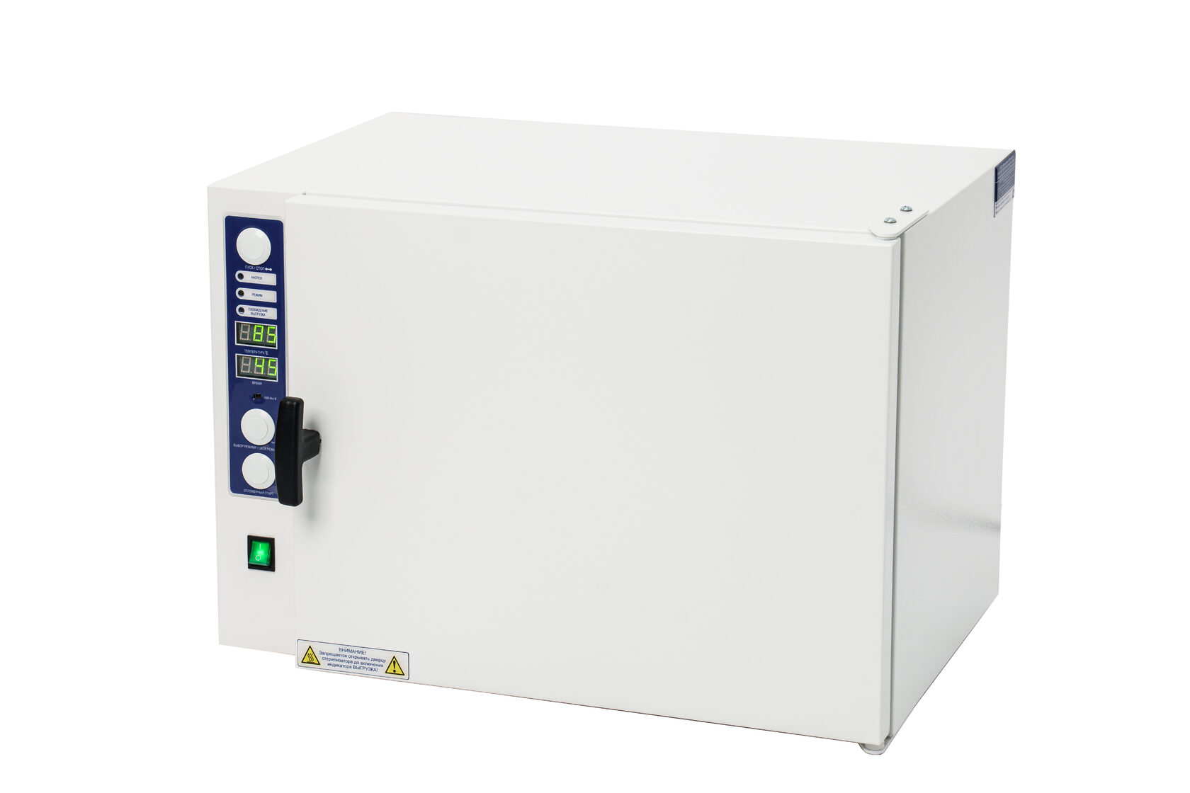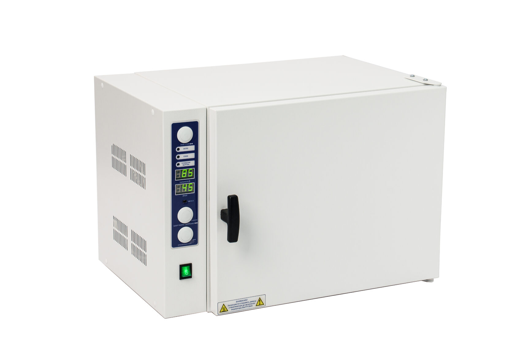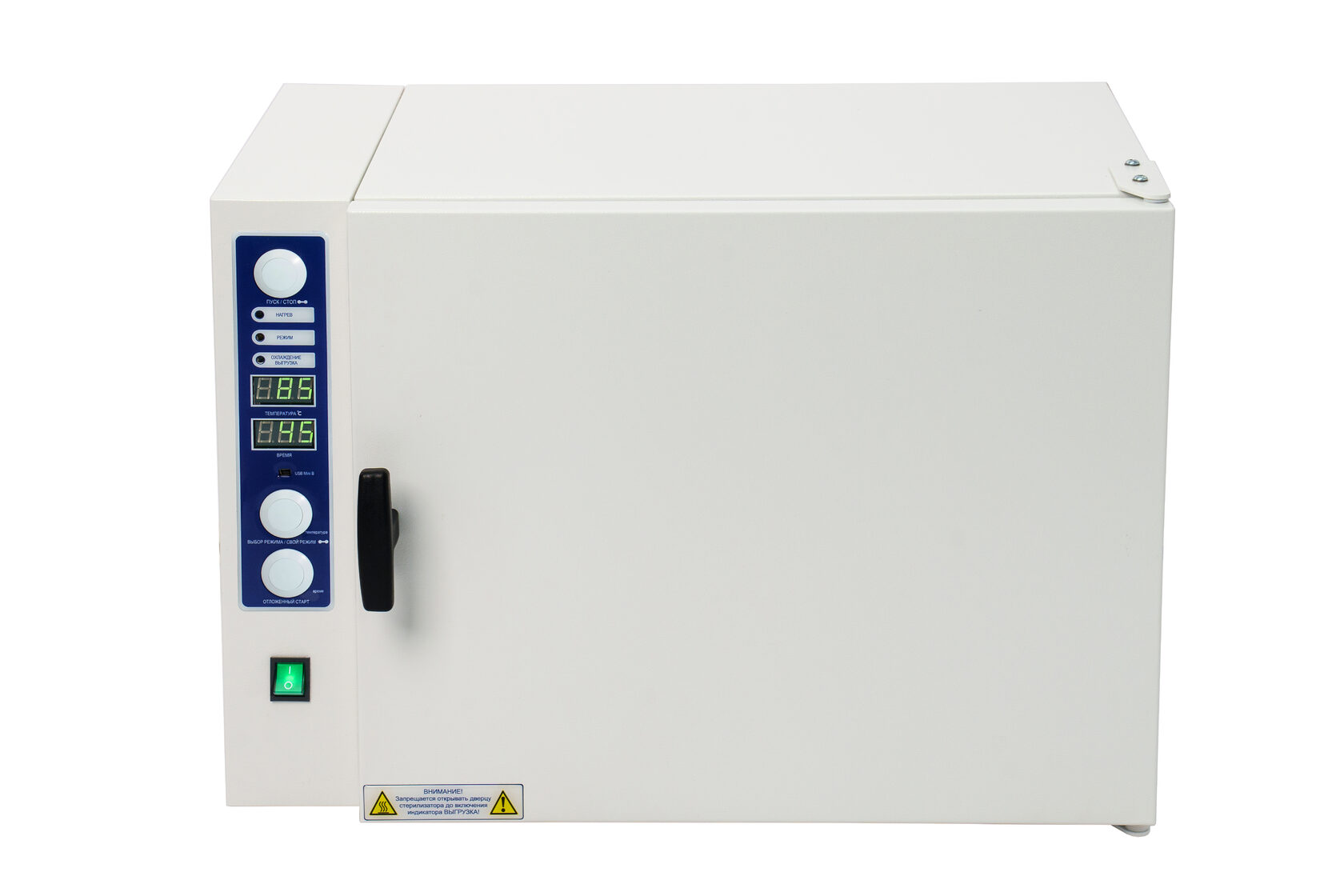Стерилизатор "Ферропласт" при загруженной стерилизационной камере должен обеспечивать автоматическую поддержку температурных режимов в диапазоне от +85°С до +180°С и времени стерилизационной и дезинфекционной выдержки, а также пользовательского программируемого режима +50°С до +200°С, интервалом от 1 до 999 минут.